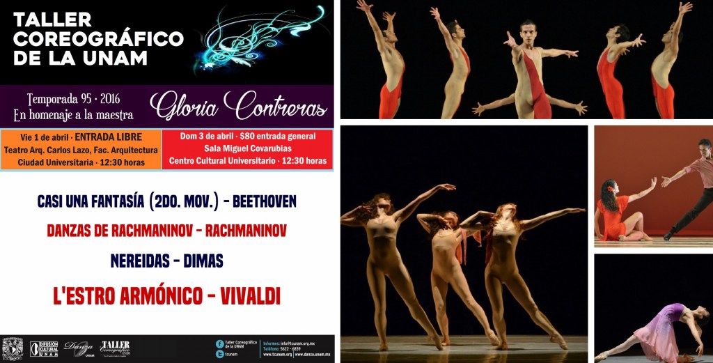 En esta ocasión el Taller Coreográfico de la Universidad Nacional Autónoma de México (TCUNAM) llevará a escena la reposición del ballet «L’estro armónico», el único en la carrera coreográfica de Gloria Contreras (1934-2015) a partitura de Antonio Vivaldi (1678-1741), creado por la coreógrafa y fundadora de la compañía en 1992. Complementarán el programa: «Casi una fantasía», «Danzas de Rachmaninov» y «Nereidas» a música de Ludwig van Beethoven, Sergei Rachmaninov y Amador Pérez Dimas, respectivamente.