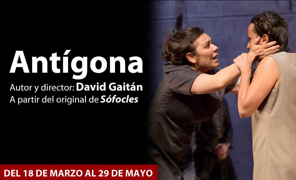 Antígona, bajo la dirección de David Gaitán, continúa temporada en el Teatro Juan Ruiz de Alarcón del Centro Cultural Universitario (Insurgentes Sur 3000). Funciones: Jueves y viernes/20:00 hrs., sábado/19:00 hrs. y domingo/18:00 hrs. Admisión de $150.00 con descuento del 50% a estudiantes, maestros, UNAM, INAPAM, y jubilados del ISSSTE e IMSS con credencial vigente. Jueves $30.00.