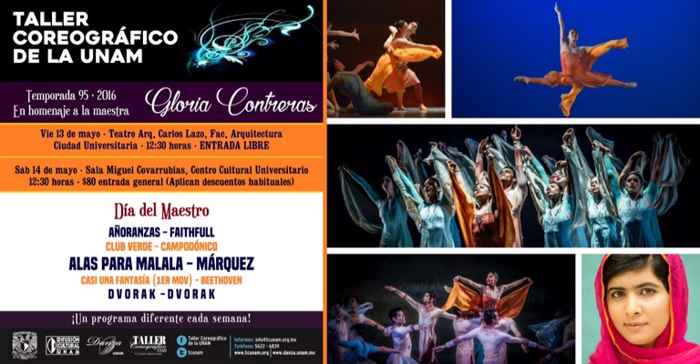 El Taller Coreográfico de la Universidad Nacional Autónoma de México (TCUNAM) continúa con las actividades correspondientes a su Temporada 95, en esta ocasión con un programa dedicado al Día del Maestro. El programa estará integrado por una selección de obras de Gloria Contreras (1934-2015), fundadora de la compañía, como: «Añoranzas», «Club verde», «Alas para Malala», «Casí una fantasía» y «Dvořák» a partituras de Marianne Faithfull, Rodolfo Campodónico, Arturo Márquez, Ludwig van Beethoven y Antonin Dvořák, respectivamente.