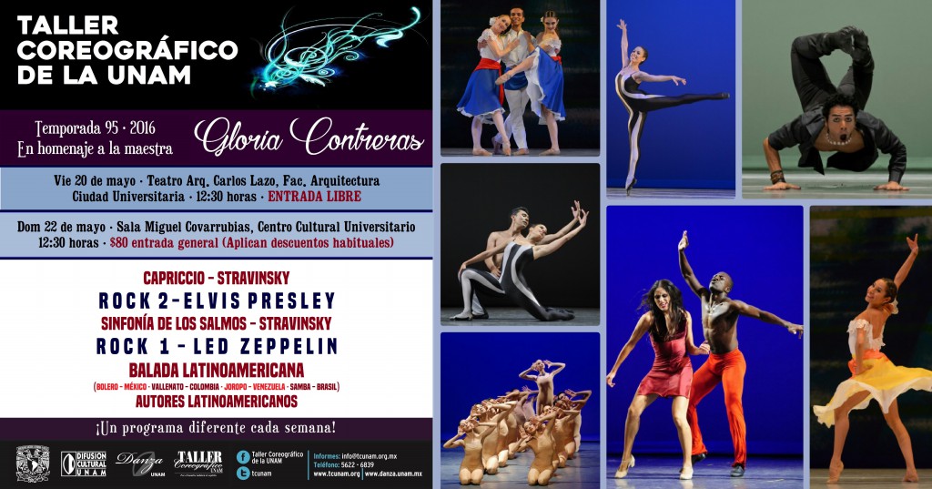 El Taller Coreográfico de la Universidad Nacional Autónoma de México (TCUNAM) incorporará ritmos latinoamericanos, rock and roll y heavy metal en su siguiente programa, a partir de obras de Gloria Contreras, fundadora de la compañía, como: «Capriccio», «Rock 2», «Sinfonía de los salmos», «Rock 1» y «Balada latinoamericana» a música de Igor Stravinsky, Elvis Presley, Led Zeppelin y diferentes autores latinoamericanos.