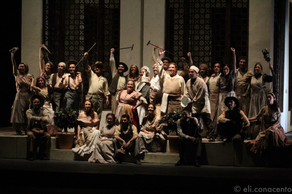 ¿Qué no aplaudir de esta producción? La escenografía, modular y siempre cambiante, fabulosa e interesante que sorprendió a todos; las voces maravillosas, cuidadas, con dedicación y preparación suficiente para el reto que este montaje representa; el vestuario -salvo un detalle que pasaría imperceptible- precioso y muy bien colocado en época como el maquillaje, dirección de escena genial y elaborada que no dejó ir ni un cabo. La orquesta y el coro: señoras y señores, miles de aplausos para su ejecución. Ejecutantes y bailarines, totalmente a la altura. Nadie faltó, nadie sobró.