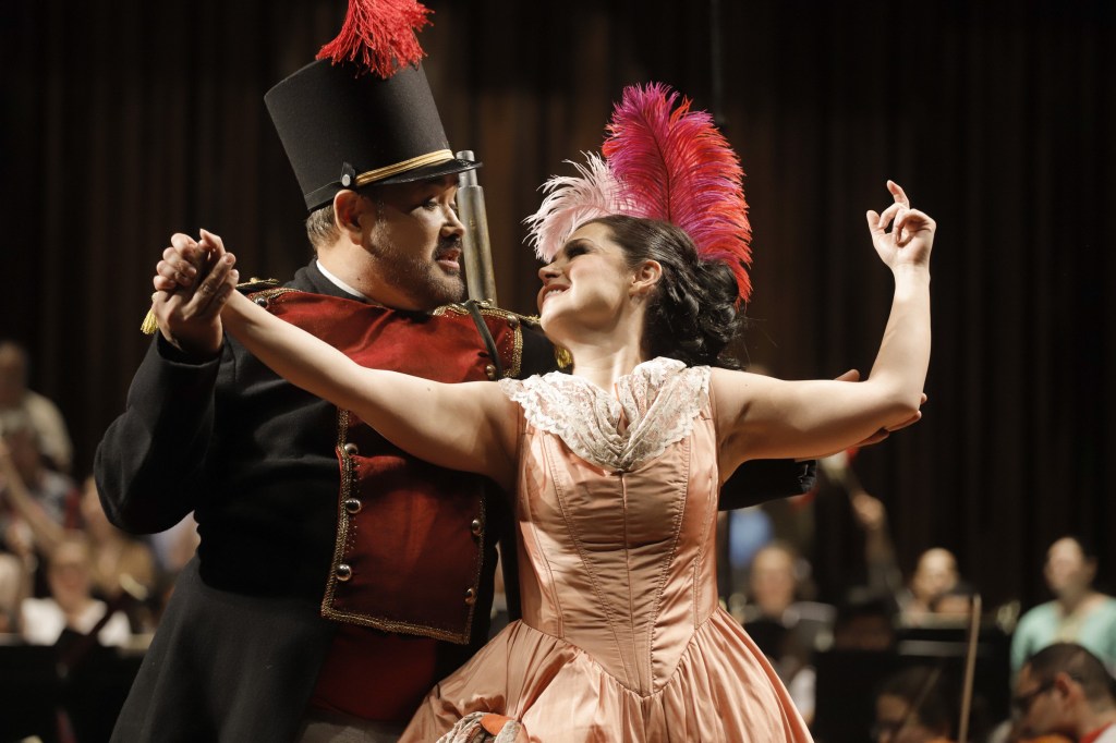 En un evidente lleno total tras agotar los boletos apenas unas horas después del lanzamiento, la producción de La Hija del Regimiento de Gaetano Donizetti que presentó la Ópera de Bellas Artes encabezada por el tenor Javier Camarena (Tonio) fue ovacionada en la Sala Principal del Palacio de Bellas Artes por un animoso público que no perdió la oportunidad de hacer historia con el bis del aria Ah! Mes amis! que el veracruzano ha otorgado en los principales escenarios del mundo como el Teatro Real de Madrid, donde ha realizado esta hazaña en al menos 7 ocasiones consecutivas. Sorprendentemente, y tras casi 5 minutos de aplausos (3 para pedir la repetición y 1m 35s luego de esta), no fue requerido un segundo bis que hubiera marcado definitivamente esta como una de las actuaciones más memorables del festejado, pues no sólo representa el arranque de las festividades sino la ópera con la que debutó en el mismo escenario y junto al barítono Josué Cerón con quien compartió créditos en esa primera ocasión y podio en el Concurso Nacional de Canto Carlo Morelli del que también fuera ganadora –en una edición distinta– la mezzosoprano María Luisa Tamez, que en esta ocasión interpretó a la Marquesa de Bankerfield con un Hortensius ejecutado por Arturo López.