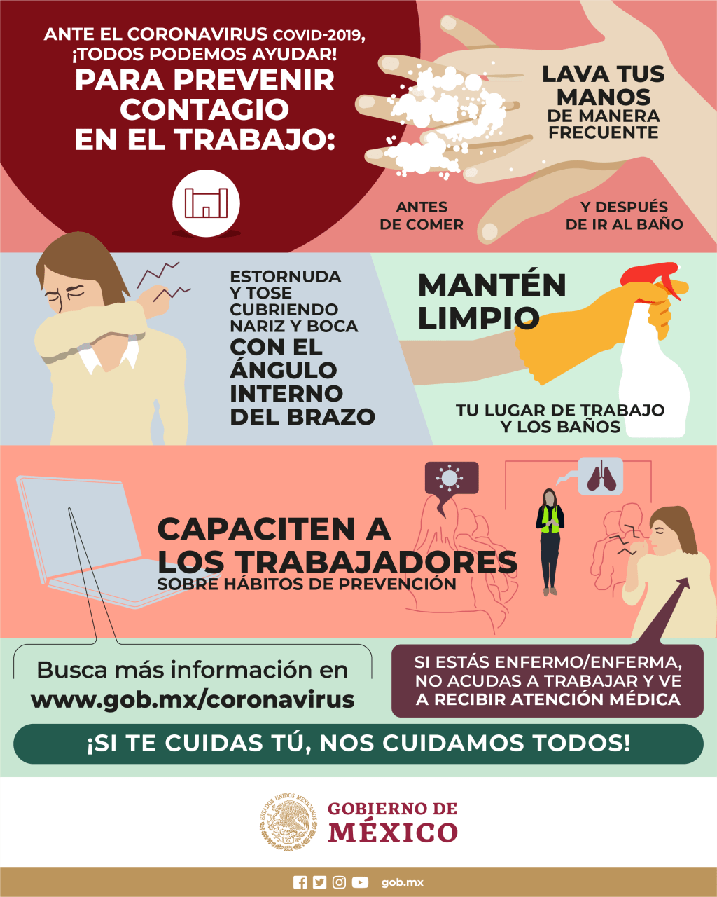 De igual forma, se hace un llamado para mantenerse informados a través de los canales oficiales de comunicación del Gobierno de México respecto al coronavirus COVID-19 al consultar la página de internet web http://www.gob.mx/coronavirus