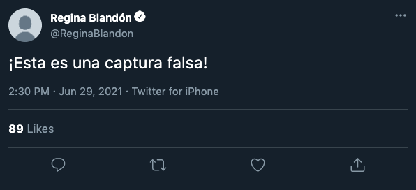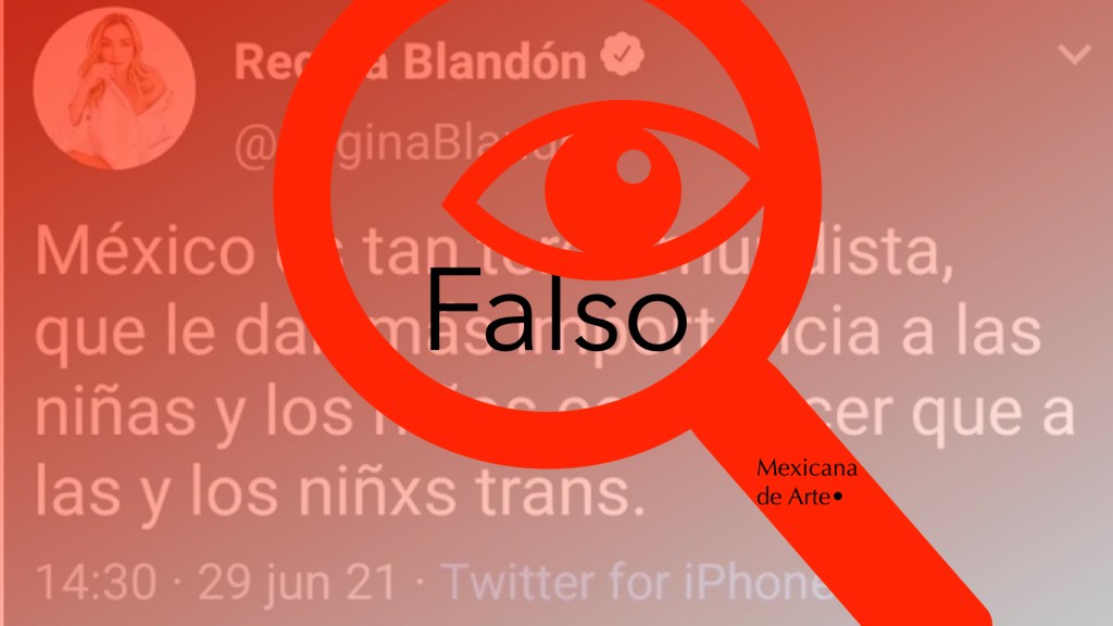 La cuenta «El Donas Trompas» publicó un tweet atribuido a la actriz Regina Blandón en el que supuestamente decía que «México es un país tan tercermundista, que le dan más importancia a las niñas y los niños con cáncer que a las y los niñxs trans», sin embargo este es falso.