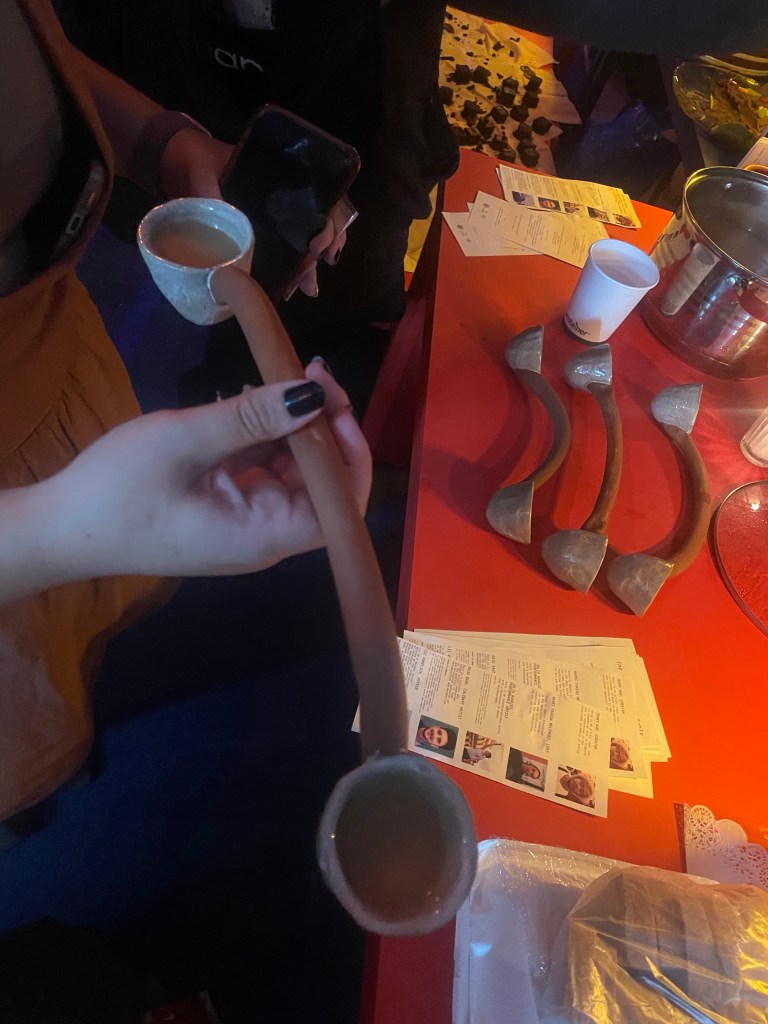 Esas podrían servir después de que ese mismo mezcal que bebí ayer haga efectos, pero sólo para uno de los afortunados que usen los Vasos para beber juntos (Cups for Drink Together) que Liz Vukelich hace con cerámica. Me sirven también un matcha en uno de ellos y me enamoro de su trabajo y la pasión con la que habla de él.