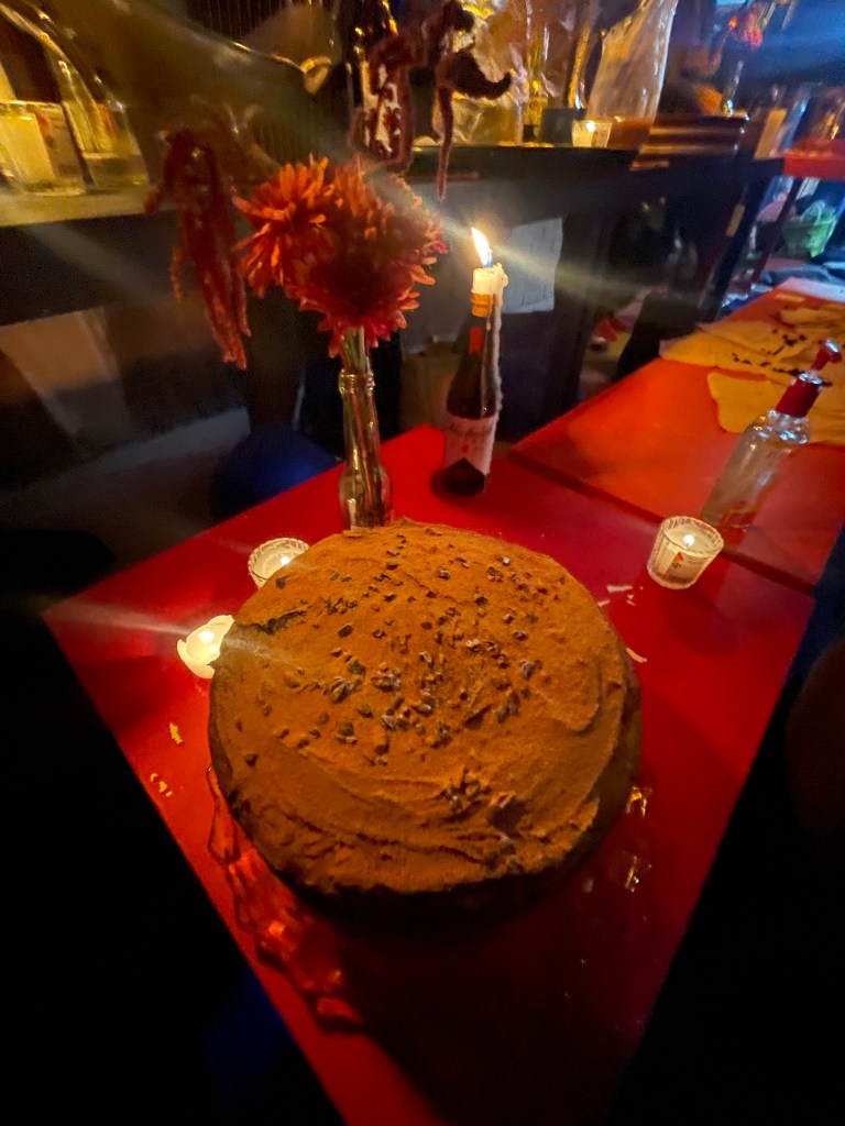 No es que yo me encuentre melancólico mientras creo estás líneas. Esa fue la metáfora que Julia Barros de la Mora planteó en sus Gotas frías: performance donde 4 bailarines sostenían las paletas de hielo que parecían resistirse al derretimiento, pero nada es permanente. Es el postre para su Laying-down dinner en la que artistas y público compartían comida que traían. El rey de la noche fue un pastel de chocolate, pieza de arte no incluida en el catálogo.